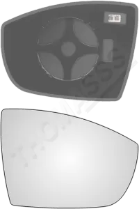 Prawy ogrzewany wkład sferyczny lusterka - z plastikiem montażowym typu E0 i oddalającym (bezbarwnym) szkłem z grzałką [#107] do zastosowaniaw Ford Galaxy II [WA6]