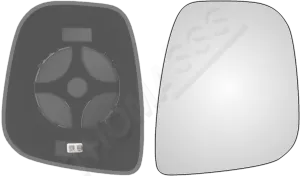 Prawy ogrzewany wkład sferyczny lusterka - z plastikiem montażowym typu E0 i oddalającym (bezbarwnym) szkłem z grzałką [#418] do zastosowaniaw Toyota ProAce II
