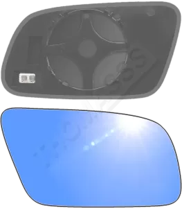 Antyrefleksyjny prawy ogrzewany wkład sferyczny lusterka - z plastikiem montażowym typu E0 i niebieskim oddalającym szkłem z grzałką [#185] do zastosowaniaw Audi RS6 C5 [4B]