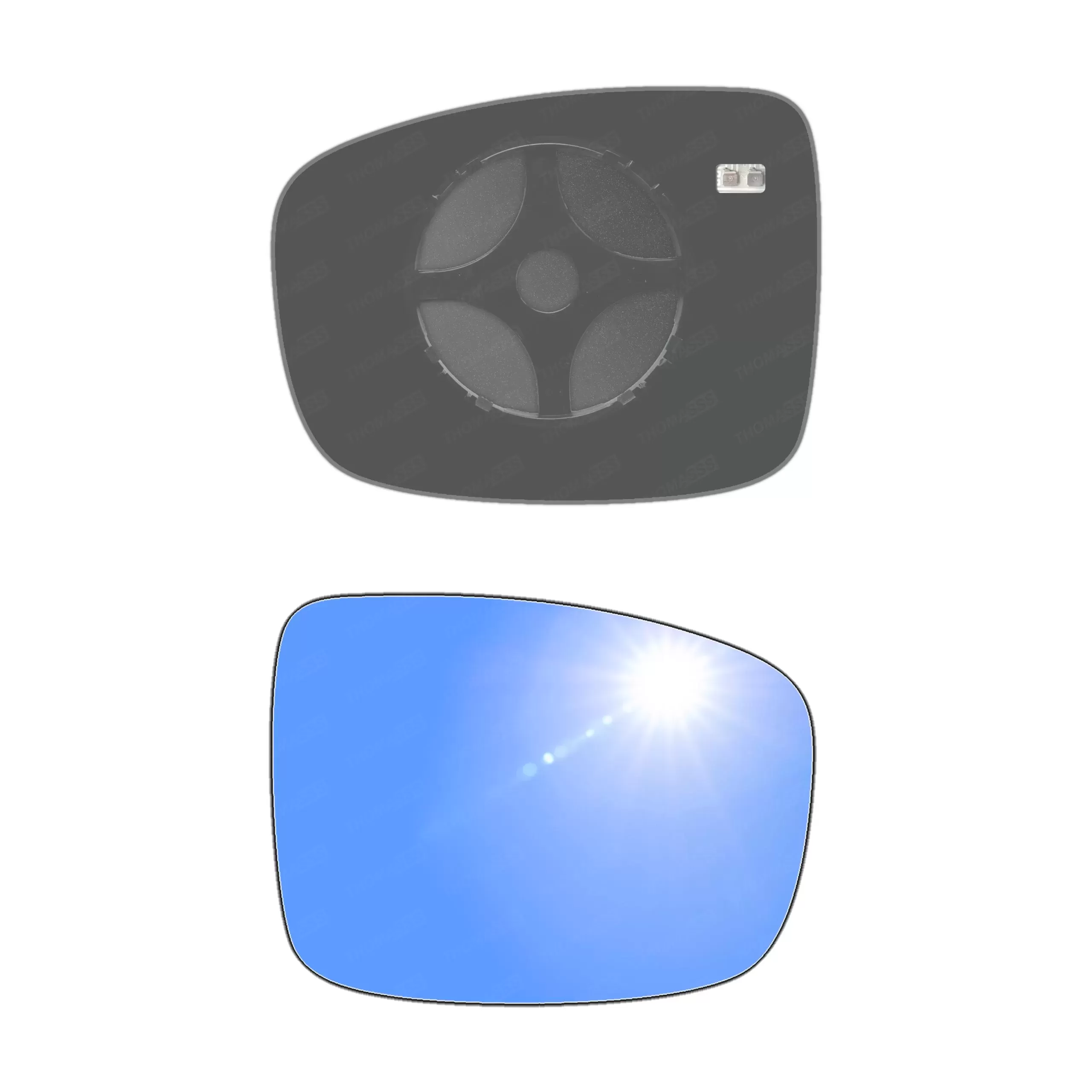 Antyrefleksyjny prawy ogrzewany wkład sferyczny lusterka - z plastikiem montażowym typu E0 i niebieskim oddalającym szkłem z grzałką [#360] do zastosowaniaw Hyundai ix20