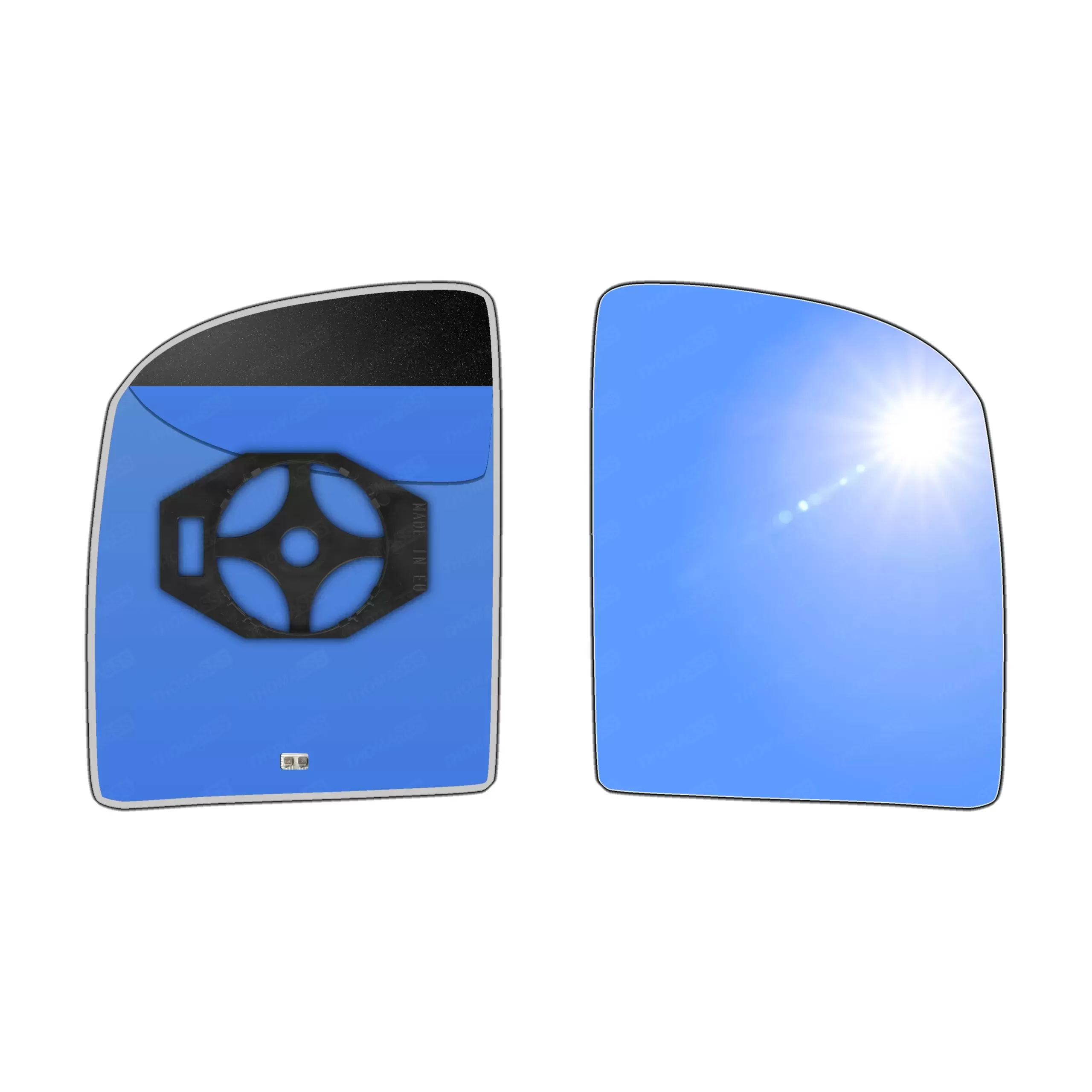 Antyrefleksyjny prawy ogrzewany wkład sferyczny lusterka - z plastikiem montażowym typu E0 i niebieskim oddalającym szkłem z grzałką [#1275] do zastosowaniaw MAN TGE