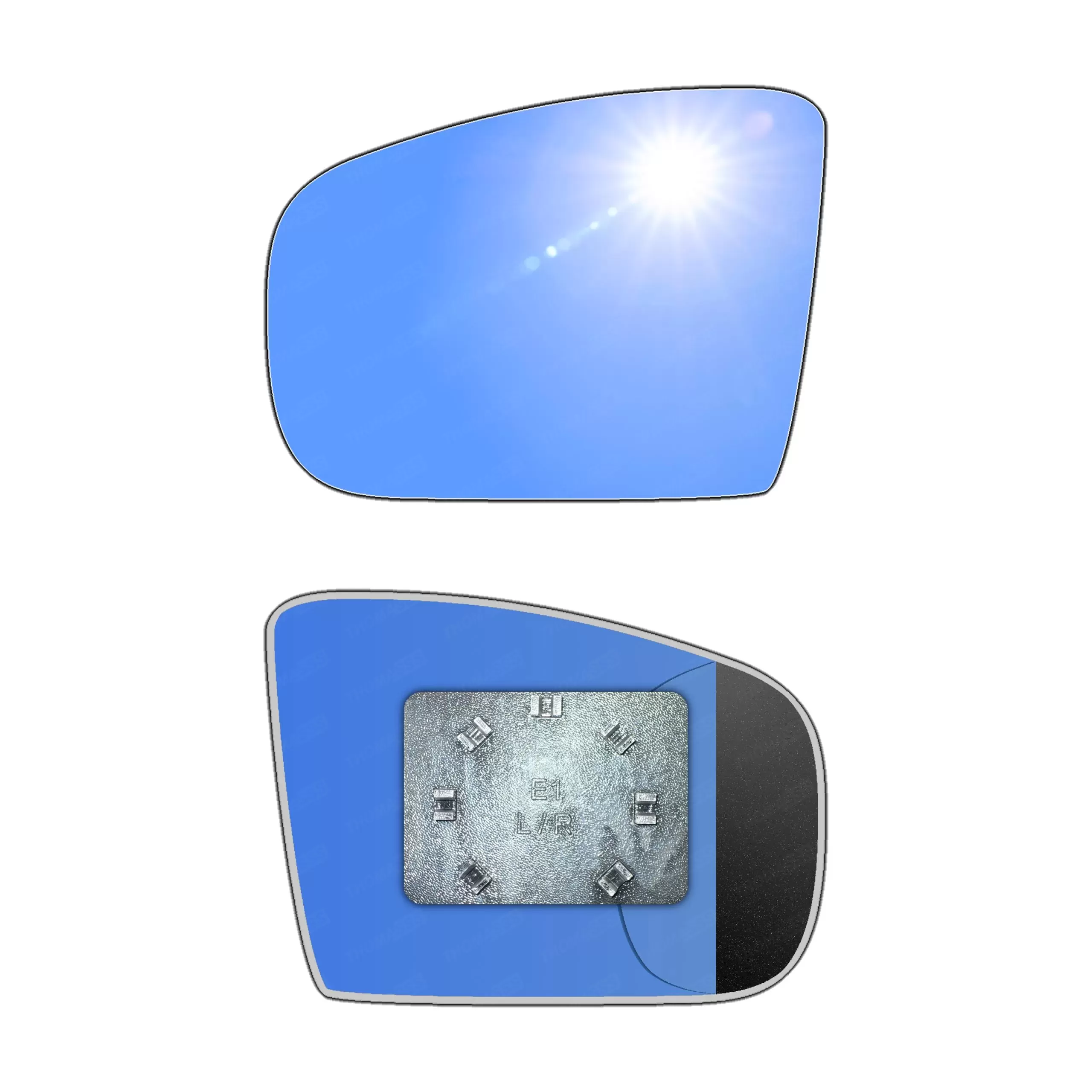 Antyrefleksyjny niebieski lewy wkład sferyczny lusterka - z plastikiem montażowym typu E1 i niebieskim oddalającym szkłem [#079] do zastosowania w Mercedes-Benz X164 [klasa GL]