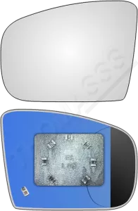 Lewy ogrzewany wkład sferyczny lusterka - z plastikiem montażowym typu E1 i oddalającym (bezbarwnym) szkłem z grzałką [#079] do zastosowaniaw Mercedes-Benz X164 [klasa GL]
