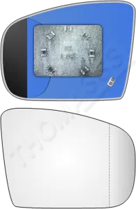 Prawy ogrzewany wkład asferyczny lusterka - z plastikiem montażowym typu E1 i oddalającym szkłem z grzałką [#079] do zastosowaniaw Mercedes-Benz W163 ML [klasa M / ML]