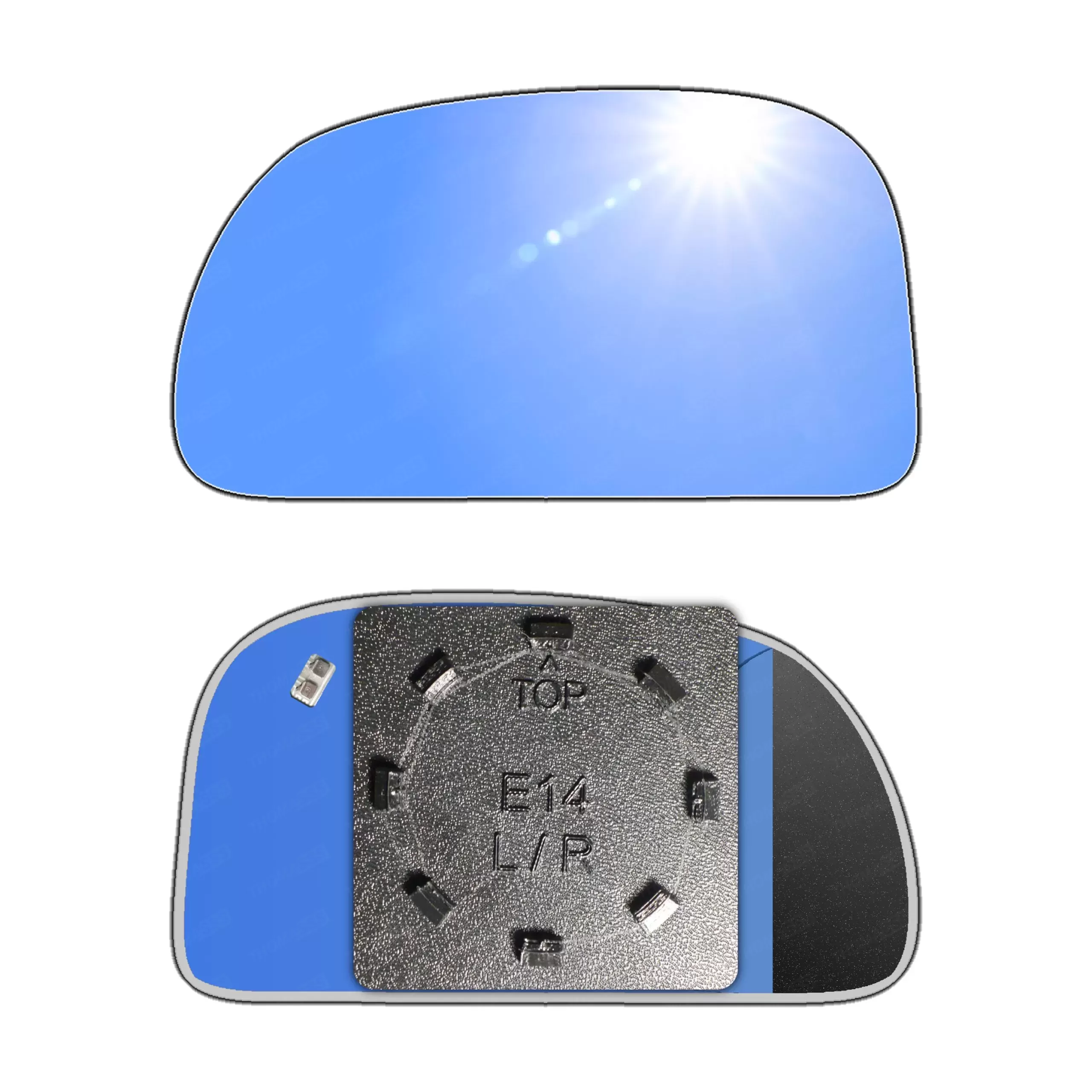 Antyrefleksyjny lewy ogrzewany wkład sferyczny lusterka - z plastikiem montażowym typu E14 i niebieskim oddalającym szkłem z grzałką [#189] do zastosowaniaw Mitsubishi Lancer VII