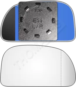 Prawy wkład asferyczny lusterka - z plastikiem montażowym typu E14 i oddalającym szkłem [#189] do zastosowaniaw Mitsubishi Lancer VII