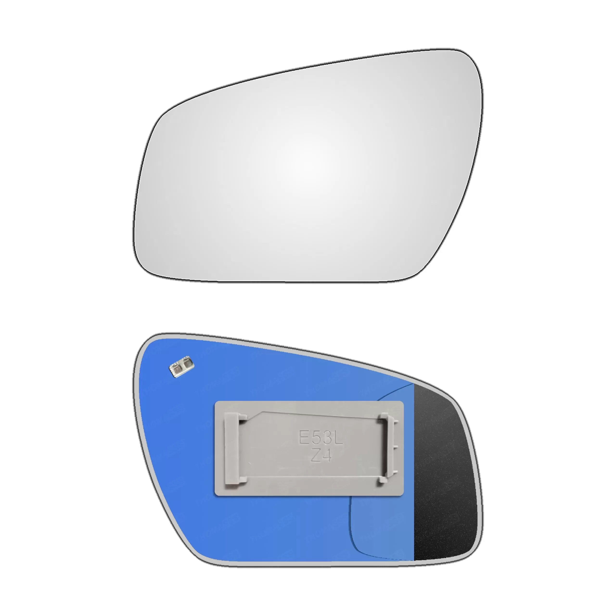 Lewy ogrzewany wkład sferyczny lusterka - z plastikiem montażowym typu E53 i oddalającym (bezbarwnym) szkłem z grzałką [#009] do zastosowaniaw Ford Fusion I