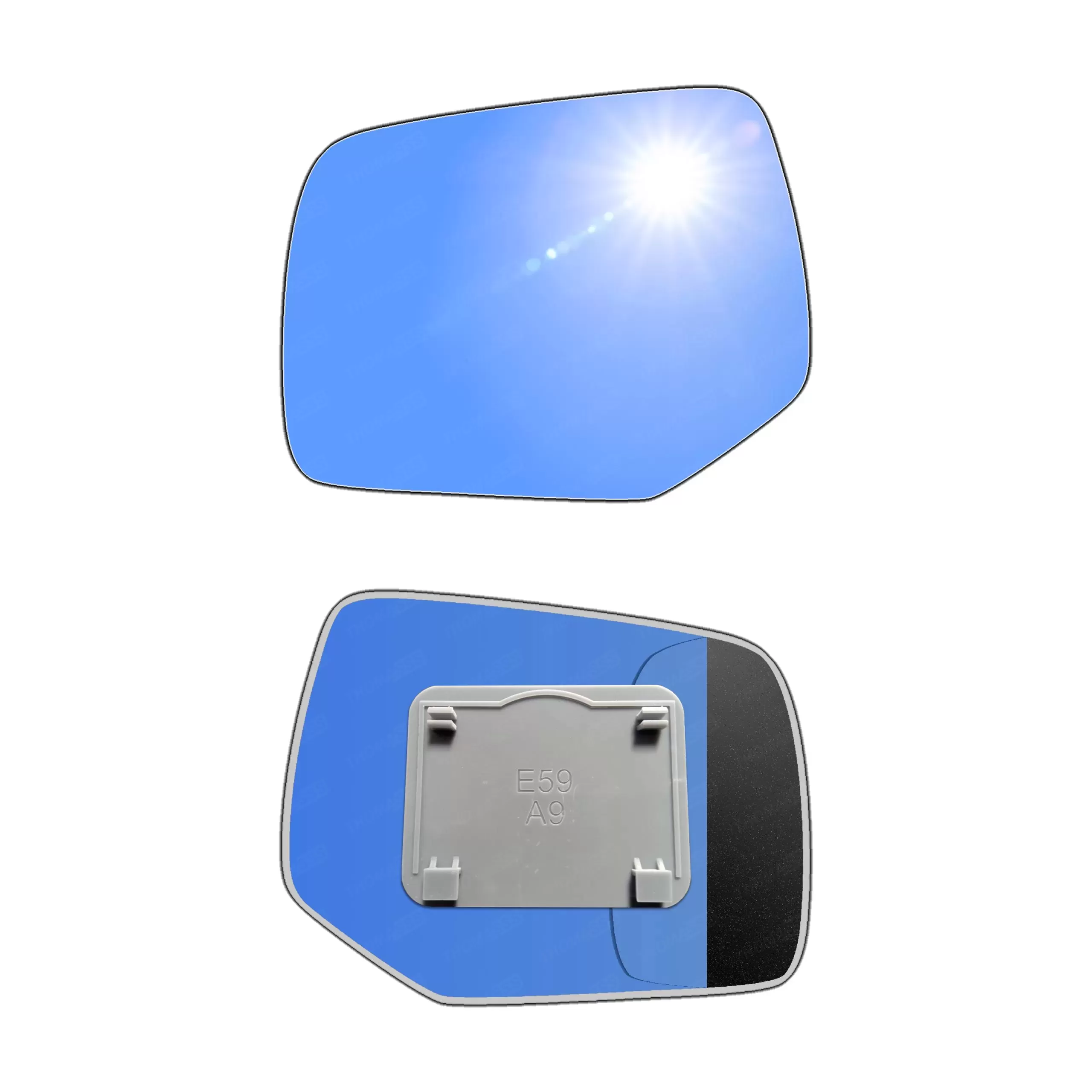 Antyrefleksyjny niebieski lewy wkład sferyczny lusterka - z plastikiem montażowym typu E59 i niebieskim oddalającym szkłem [#732] do zastosowaniaw Mercury Mariner II