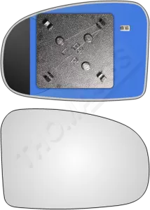 Prawy ogrzewany wkład sferyczny lusterka - z plastikiem montażowym typu E8 i oddalającym (bezbarwnym) szkłem z grzałką [#299] do zastosowaniaw Toyota Avensis III [T27]